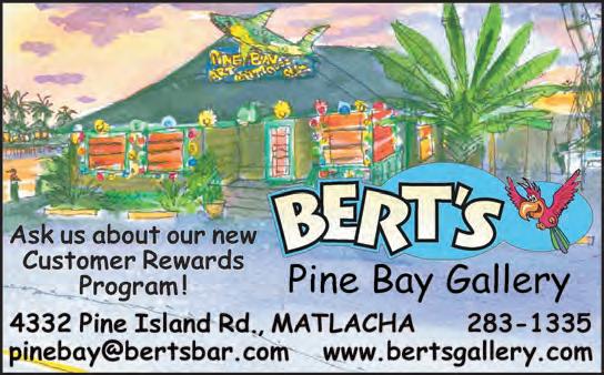 •Bert’s Bar & Grill: 4271 Pine Island Rd, Matlacha.Live music nitely. 282-3232.