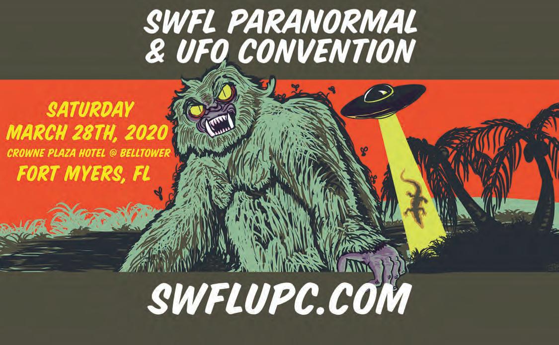 The Southwest Florida Paranormal & UFO Conference will meet at the Crowne Plaza Hotel at Bell Tower on March 28, with exhibits, speakers, authors, vendors, and special guests for those who believe in UFOs, aliens, astral travel, ghosts, cryptids, psy-powers, remote viewing, time travel, chemtrails, weather manipulation, ancient mysteries, Gaia, crystals, or that planetary/stellar alignment are real and important.