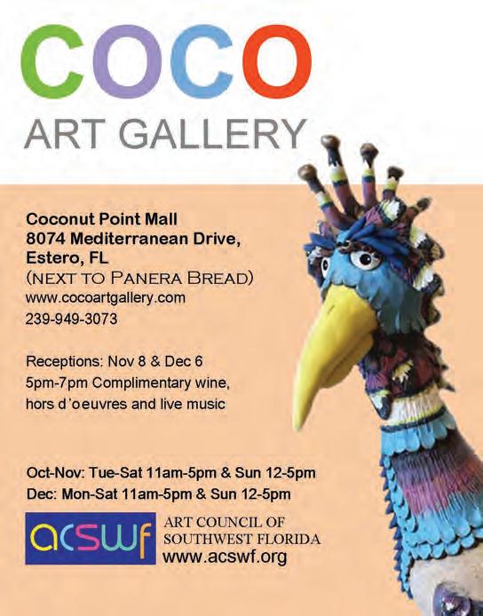 •Corkscrew Swamp Sanctuary: 375 Sanctuary Rd, Naples. Art exhibits in cafe – Nov 1-30: Tim Parker; Dec 1-31: Tara Funk Grim. 7a-5:30p. Free. 248-9151.