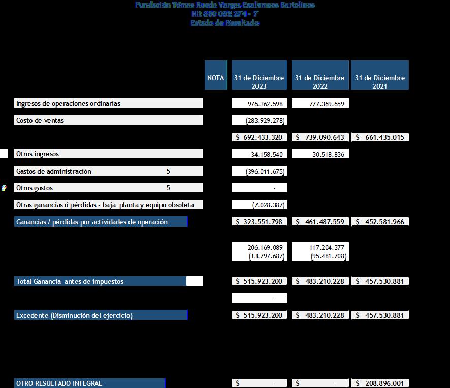 1. Logros FTRV 2023 1.1 Celebración de los 50 años de la Fundación Tomás Rueda Vargas: los grandes eventos del 2023 1.2 Crecimiento FTRV 2023 1.3 Estructura y administración 1.4 Formación complementaria 2. El 2023 en cifras 3. Informe Financiero