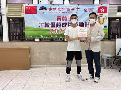2022年10月,郭偉强為香港 電車職工會成績優越的員工子 女頒獎。