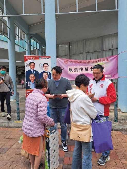 2025年2月24日、2月25日、3月6日、3 月9日、3月10日、4月22日,梁子穎分別 在石門、尚德邨、寶琳邨及安蔭邨擺設街 站,向市民解說及派發單張,宣傳取消強 積金對沖的安排。