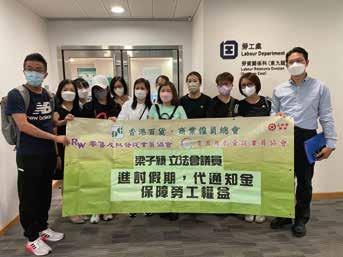 2022年10月12日至11月21日期間,梁 子穎連同香港百貨、商業僱員總會協助工 友向公司追討一個月代通知金、法定假日 及年假薪酬、遣散費等補償,並向勞工處 立案展開追討程序。最終60名工友於上 庭前與僱主達成和解協議,成功協助工友 追討應有補償和法定權益。