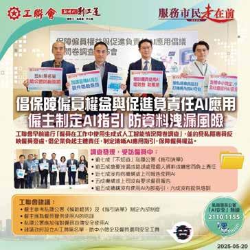 人工智能情況問卷調查」,並發表《保障僱 員權益與促進負責任AI應用倡議書》,以及 簡報與私隱專員會面情況。工聯會表示,特 別關注佔香港企業絕大多數的中小微企在AI