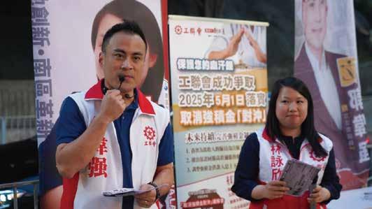 2025年6月9日,郭偉强連同飲食業總工會主席林千 國、工會代表,向勞工處反映現行外勞政策的漏洞, 並提出八項建議: