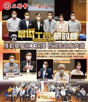2022年10月11日,郭偉强及梁子穎出席 於土瓜灣工人俱樂部舉行「最低工資研 討會」,工聯會邀請勞工及福利局副局 長何啟明、工會、社區組織及學者等出 席交流活動。