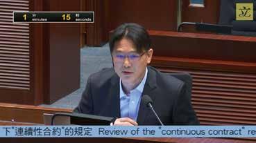 郭偉强、梁子穎於2024年3月25日出席立法會人力事務委員會會議 提出動議盡快立法修訂「連續性合約」的規定,即盡快將「418」 規定轉為「468」方案,該動議議案獲絕大多數議員支持。