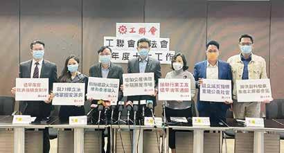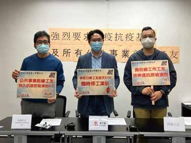 梁子穎等聯同工聯會權益委員會及各工會舉 行記者會,要求政府向不同受影響的行業如 美容健體、飲食業等發放抗疫津貼。同時去 信財政司司長要求約見,商討彈性處理受僱 證明,以及向自由工作者及無強積金戶口人 士發放抗疫津貼。