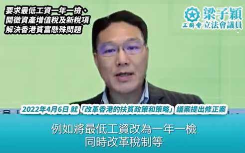 2022年7月7日,梁子穎發言支持郭偉强的「完善法定最低工資制度」議員議案。
