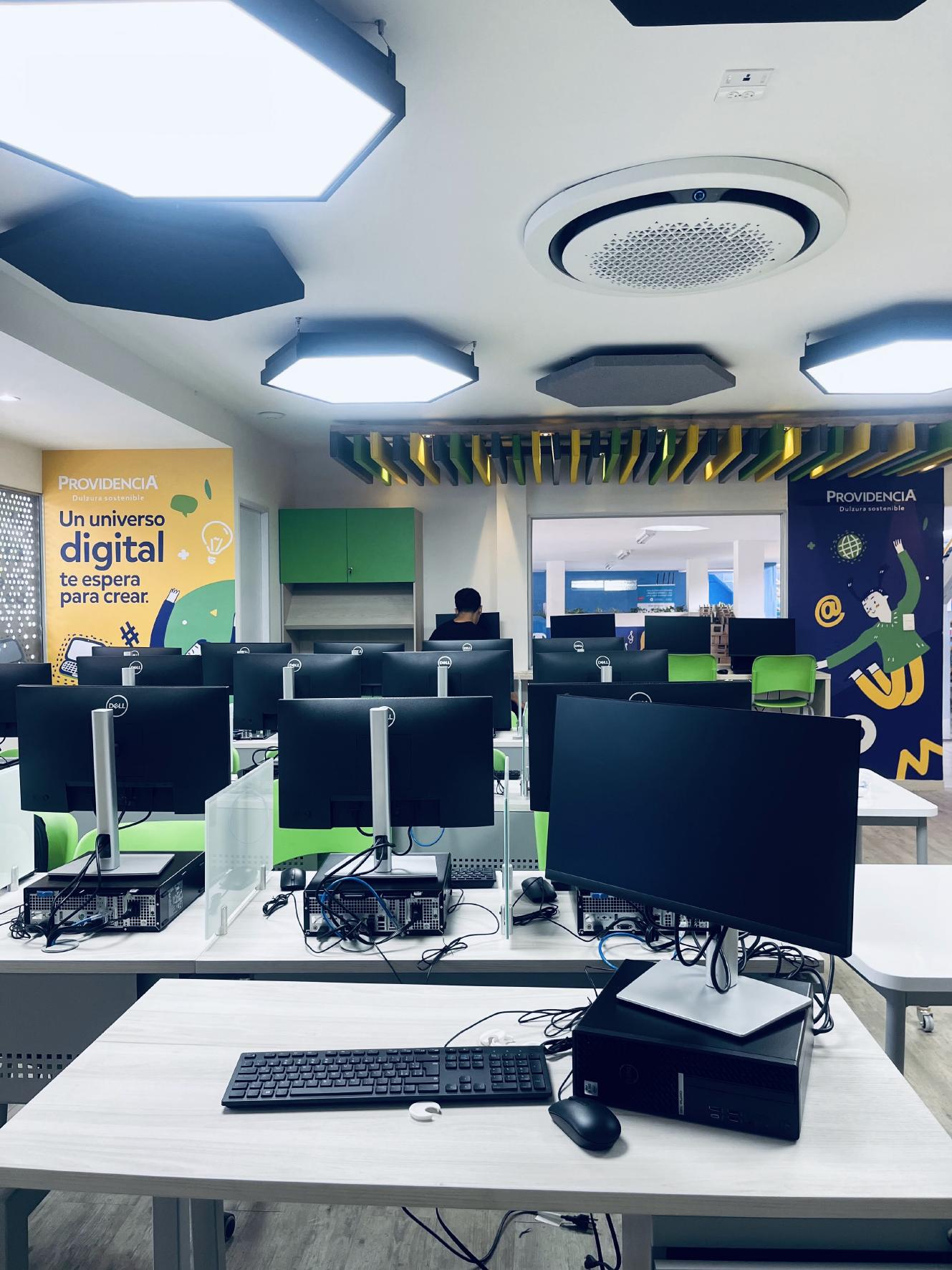 La sala cuenta con 20 computadores, sonido integrado, vídeo beam y tableros rodantes, este espacio además de facilitar clases para los estudiantes, en el horario contrario a las clases y los fines de semana estará abierto para la comunidad, quienes podrán realizar consultas, reuniones, cursos y capacitaciones.