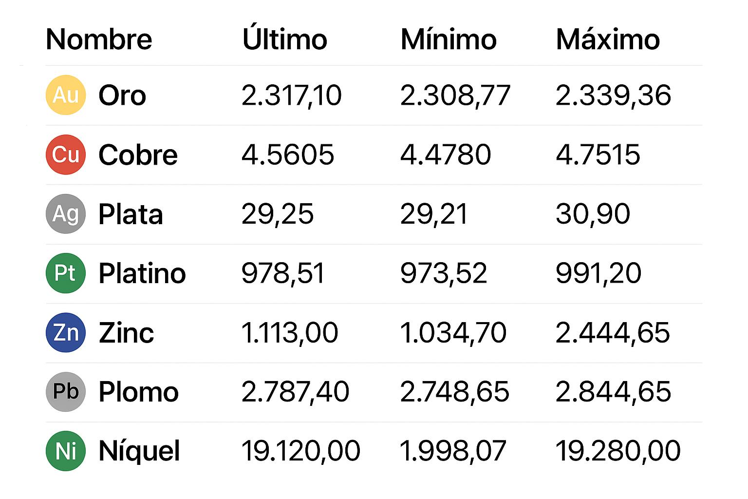 EVOLUCIÓN DE LA COTIZACIÓN DE METALES JULIO 2025