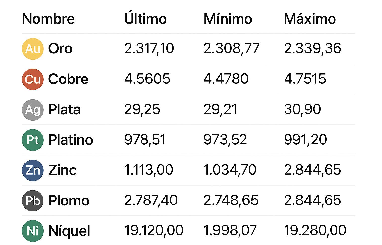 EVOLUCIÓN DE LA COTIZACIÓN DE METALES JUNIO 2025