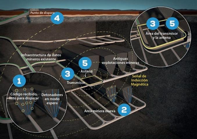 A diferencia de los sistemas tradicionales mediante cableado, las señales de disparo viajan desde lo que se considera que es el explosor hasta el detonador, con el sistema WebgenTM, de la empresa Orica, se establece comunicación con el detonador estando dentro del barreno mediante ondas de frecuencias ultrabajas, denominadas de inducción magnética.