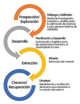 Conviene, en este apartado, recordar algunas de las fases principales de desarrollo de un proyecto minero, con el fin de definir el alcance que, en nuestra opinión, debe tener la digitalización dentro de este sector. Esa digitalización debe abarcar desde la exploración y prospección hasta la fase de comercialización de los minerales o productos derivados de estos, es decir toda la cadena de valor. El final del proyecto coincidirá con la clausura de la mina, llevándose a cabo todos los trabajos de recuperación de los terrenos afectados, desmantelamiento de las instalaciones auxiliares, etc.