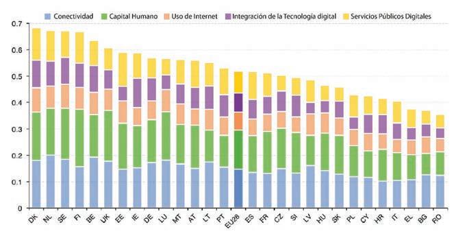 cuanto a la implantación de la tecnología digital, siendo el indicador utilizado la suma de los siguientes parámetros: nivel de conectividad, capital humano, uso de internet, integración de la tecnología digital y servicios públicos digitales.