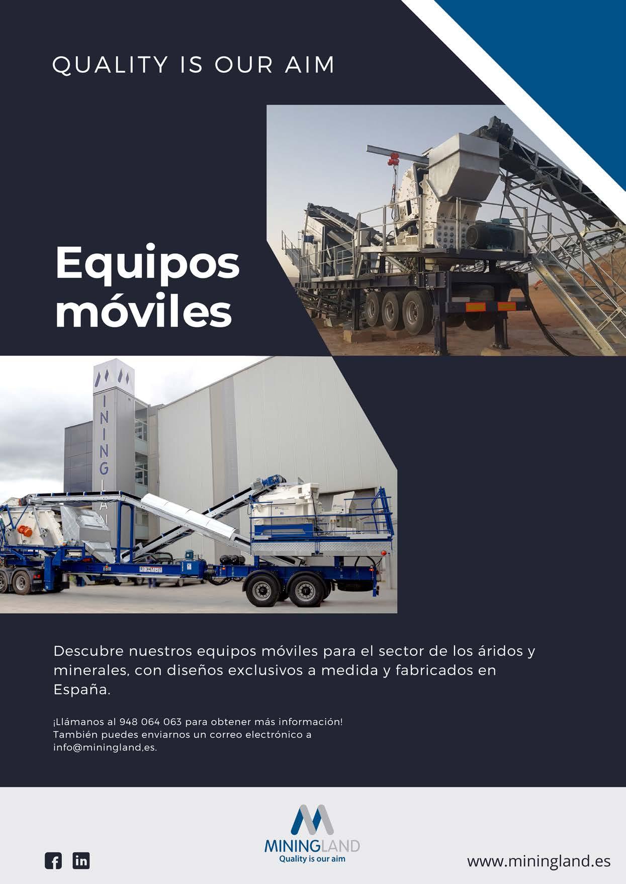 de cliente. Así, de los 64 equipos móviles comercializados en España en 2024 se puede decir que las ventas se han repartido de una forma bastante homogénea en lo que a explotaciones mineras y reciclaje se refiere. El 42,18% (27 unidades) ha sido en el sector de las instalaciones mineras, mientras que un 35,93% (23 unidades) en el de reciclaje y el restante 21,87%, con 14 unidades, ha sido para el sector de los contratistas.