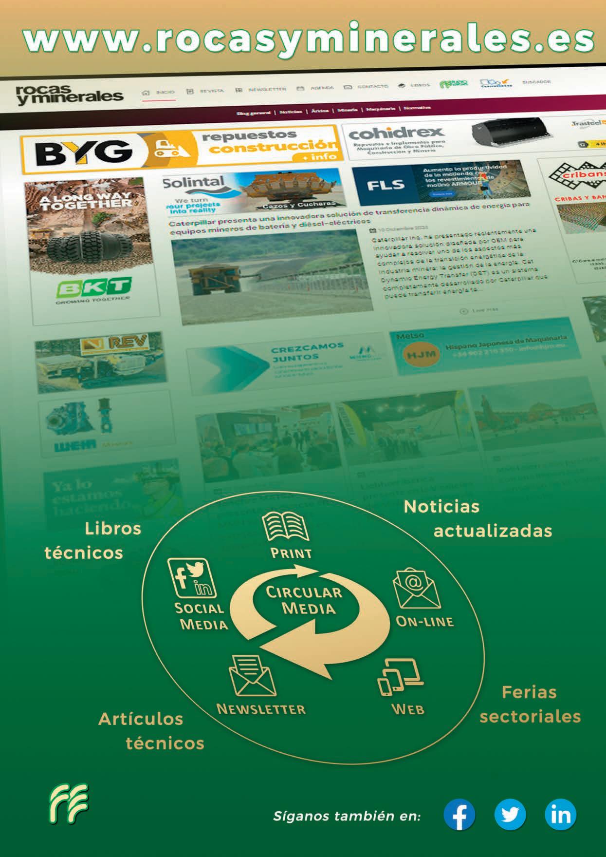 Vuelve a la portada de marzo de la revista Rocas y Minerales una de las empresas españolas más valoradas en la fabricación de productos antidesgaste de calidad y alto rendimiento en España y en el mundo. La compañía BYG, creada en 1968, fabrica y distribuye repuestos adaptables para las principales marcas de maquinaria de movimiento de tierras y explotación de canteras y minería en general. Destaca su material de desgaste, las cuchillas y cantoneras, los cazos y protecciones, los rippers y accesorios, los rodajes y cadenas, los aceros y chapas antidesgaste y los neumáticos OTR, entre otros muchos productos.