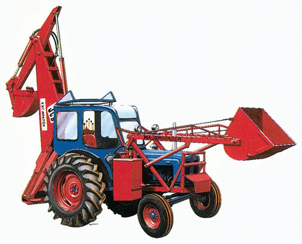 “Diseñado inicialmente para la reconstrucción en la posguerra, como una máquina que pudiera realizar una gran cantidad de tareas in situ, el concepto comenzó como un tractor agrícola con un Major Loader instalado en la parte delantera y un brazo excavador en la parte trasera. En 1953, Joseph Cyril Bamford había diseñado y lanzado el Mk 1, una de las máquinas más importantes e influyentes que ha visto jamás la industria de la construcción