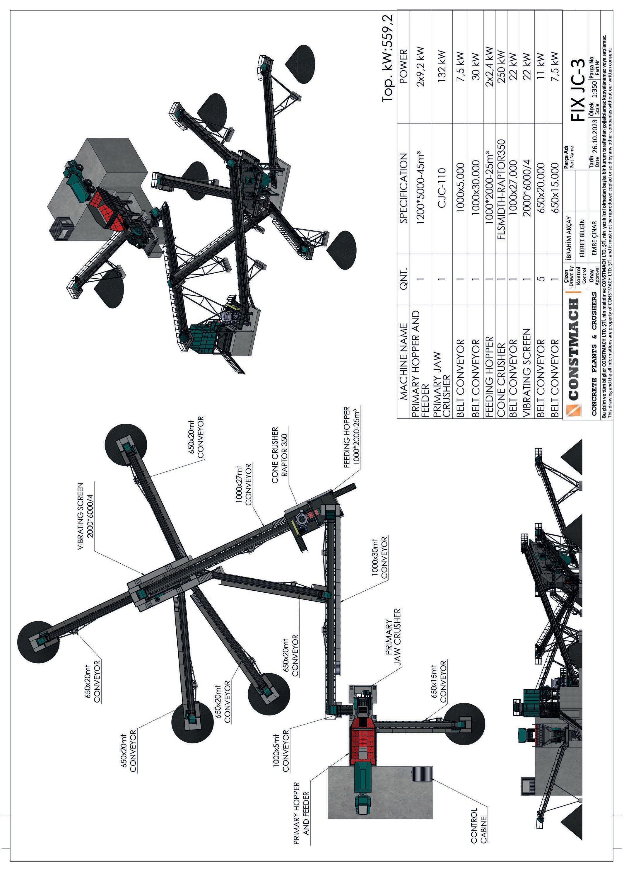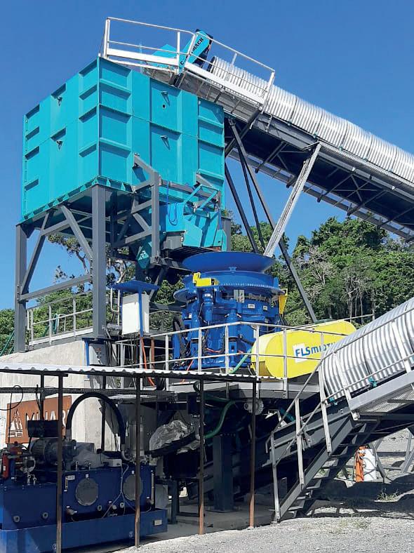 Caes-Constmach utiliza actualmente en todas las plantas que requieren de un triturador de cono los equipos fabricados por FLS. Se trata de unidades robustas, fiables y de fácil mantenimiento. En la portada se muestra el Raptor 350, un equipo de 250 kW de potencia, 16 t de peso y una capacidad de producción entre 140 y 520 t/h en función del tamaño de salida.