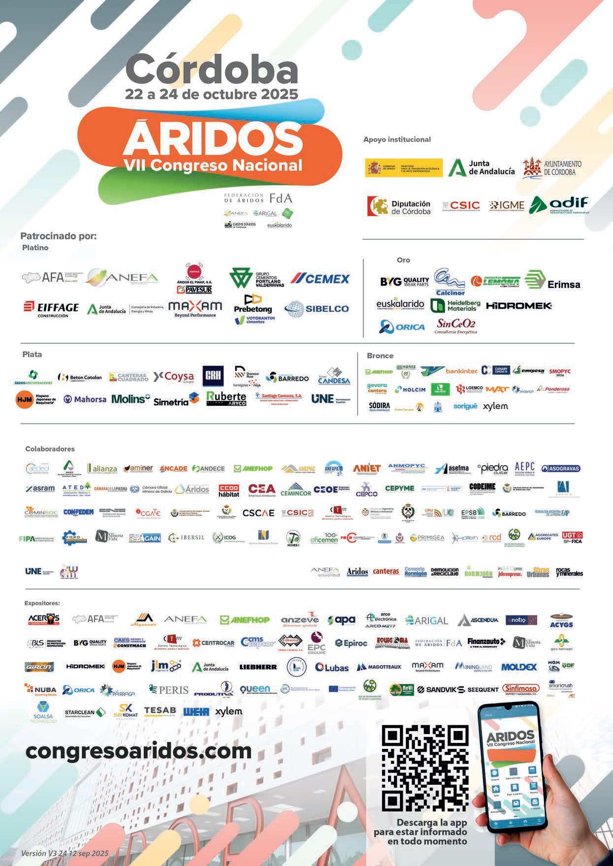El Congreso, que se desarrollará bajo el lema de Áridos 2025, esenciales y estratégicos para el desarrollo sostenible, servirá como punto de encuentro para un sector que representa a la industria extractiva con mayor volumen de Europa, con tres mil millones de toneladas de producción, y que emplea a casi 190.000 personas en nuestro continente. Al igual que sucedió en las seis primeras ediciones, se ha recibido la credencial de la Casa de S.M. El Rey Felipe VI aceptando también la presidencia de honor de esta edición.