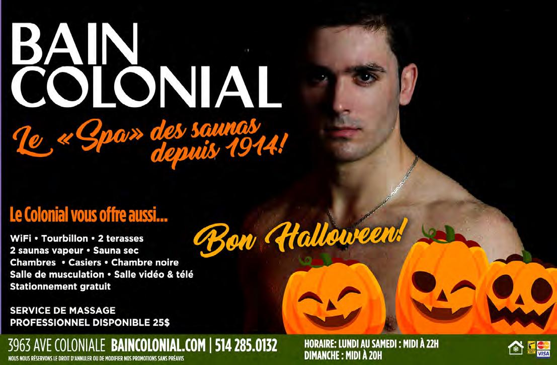 Fréquenté par une clientèle majoritairement gaie. Sur trois étages, le Colonial vous permet la détente et, qui sait, de belles rencontres. Le Colonial vous offre 3 saunas, bain tourbillon, salle de vidéo-tv, salle d'exercices, service de massage, 2 terrasses ainsi qu’un stationnement. Attractsacrowdofregulars,mostlygay.Genuinesteam systemwithnaturalrocks.Colonialoffersyou3saunas, hot tub, video room, gym equipment and massage service.