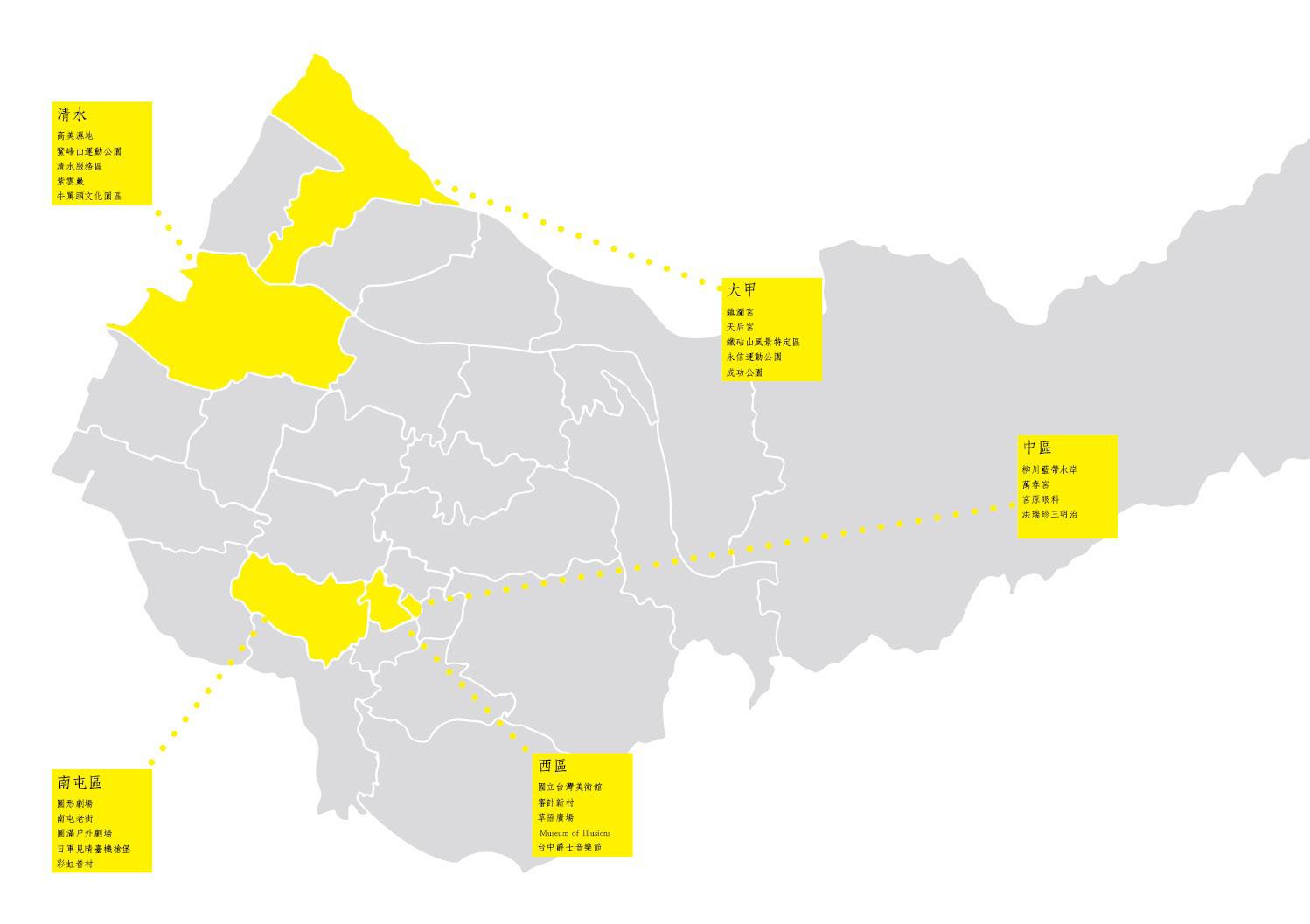 以「臺灣設計展在台中」的中英文編排,進行Logo設 計,而缺空處以簡單圖案進行填充,使Logo看起來較 為飽滿、充實。
