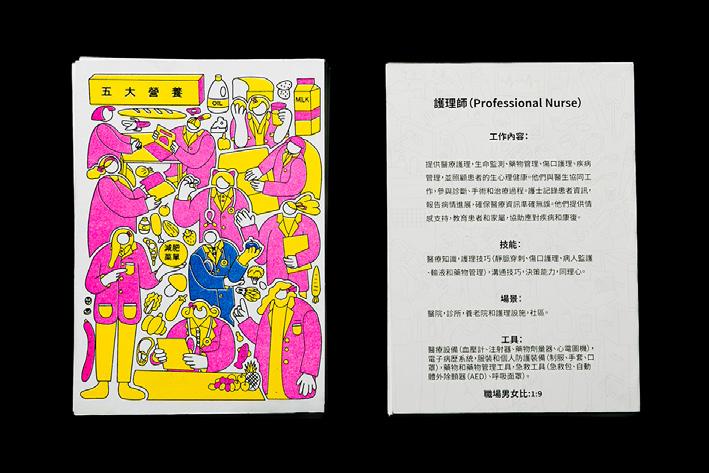 因為現今沒有關於職業與性別兼併的課程,所以我們盤點 了20種性別比例較為懸殊的職業,製作一系列教具,希 望告訴學生「職業不分性別」。