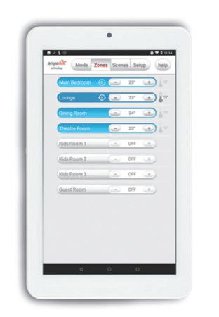 Mounted portrait or landscape to the wall, the anywAiR technology ducted controller is simple to set-up using a Google Play Store account. The touchpad can be used to operate the ducted system and manage a variety of Android apps.