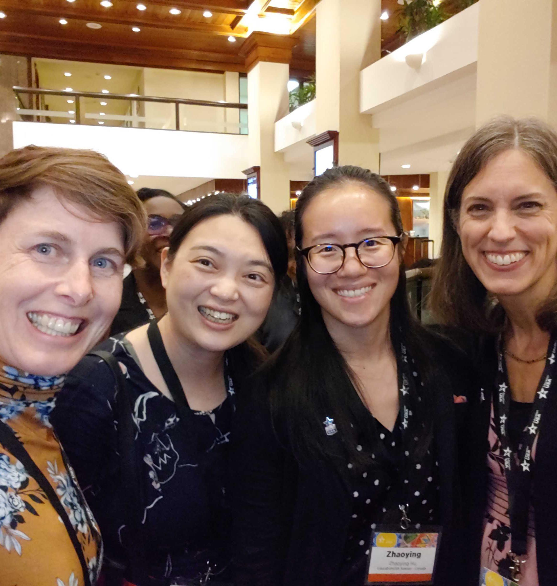 Toronto Consul General Susan Crystal (second from right) gave opening remarks at the EducationUSA Toronto College Fair. With advisers (left to right) Jenika Heim, Zhaoying Hu, and Hang Lyu.