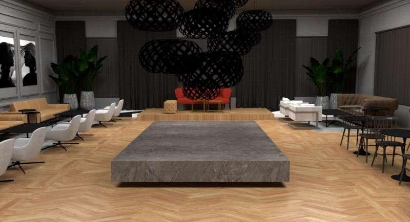 Una transición sensorial define el espacio; un recorrido en permanente diálogo/tensión con el gran objeto que se halla en el centro. La iluminación y los usos circundantes enmarcan y dan vida; generando sectores de contemplación estática y dinámica.