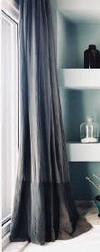 Cortinas riel americano horizontales de madera negra anchas + cortinas gasa de algodon gris con faldon