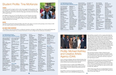 Microsoft Store, paving the way for an ongoing relationship that will include Microsoft trainings and other events for students. He was a driving force in the creation of the Leadership Council, the Fulfillment Fund’s auxiliary support group of young professionals. Under Michael’s leadership, members of CAA’s IT staff — including Leadership Council founding member Chris Wagner — have been invaluable in sourcing technology donations and are now developing a new web site for the Fulfillment Fund that will launch in 2012. In the 2011–12 school year, the CAA information technology department will host open-houses for Fulfillment Fund students to encourage them to pursue science, technology, engineering and mathematics, and learn more about careers in information technology. Born and raised in Southern California, Michael says that improving quality and access to education in local public schools is a critical issue for him and his family. “I give back because it was how I was raised,” he says. “My parents made that an important part of growing up in my life.” Giving back to the community, he says, is also part of the corporate culture of CAA, which founded the CAA Foundation led by Michelle Kydd Lee to inspire charitable giving by CAA staff and clients. “CAA says, ‘We’re going to focus on the community where we work and live.’ That focused effort has really moved the needle. It’s really made a difference.” “When I look at some of the most rewarding feelings I’ve had, it’s been around the Fulfillment Fund and other similar organizations where I’ve been able to help out.”