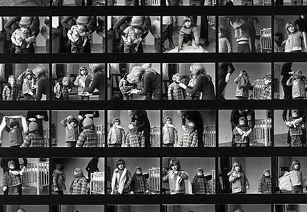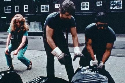 As a framework for this project, four main typologies of maintenance art in Ukeles’ oeuvre have been identified. Interaction is where she directly engages with a community involved in maintenance. An example of this would be her Handshake Ritual (1979) that was part of her Touch Sanitation series where she shook the hands of 8500 sanitation workers and accompanied them on their routes. Performance is when she employs a choreographed presentation involving maintenance people, actions, and equipment. An example of this typology is Washing/Tracks/Maintenance from 1973, where the artist washed the steps of an art museum. Exhibition is perhaps the most recognizable as traditional art in that it often occurred in an art institution. Ceremonial Arch Honoring Service Workers in the New Service Economy (1989-1994) is a large piece made up of 6000 dirty work gloves and garbage materials. Finally, Documentation is a typology that occurs frequently in Ukeles’ work since much of her work is timebased. It should be noted that there is much blurring between these four typologies – Touch Sanitation, for instance, while mainly listed as interaction here, includes aspects of all four.