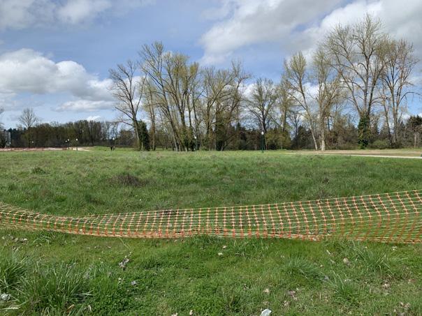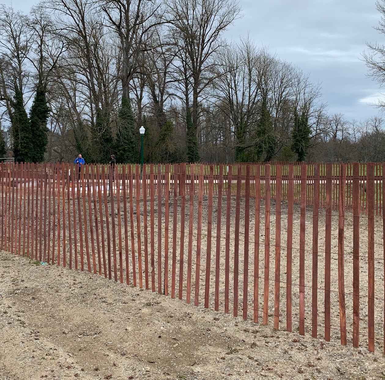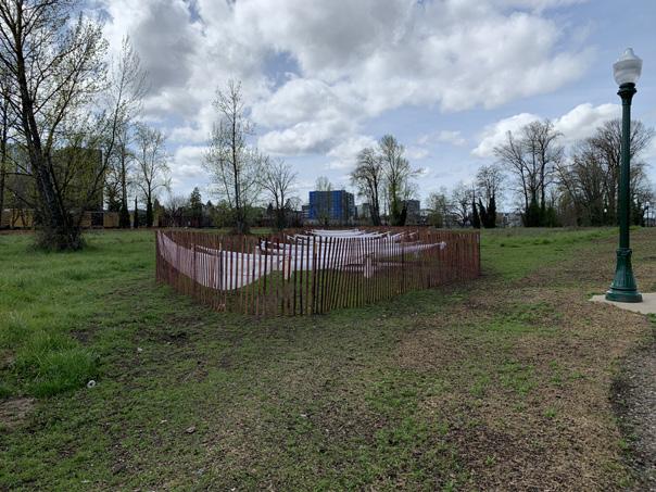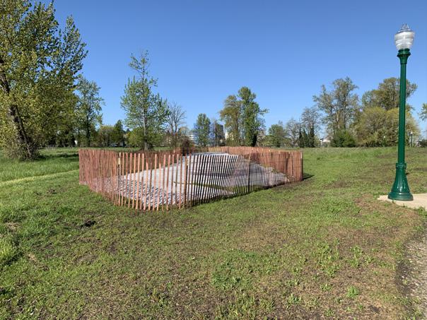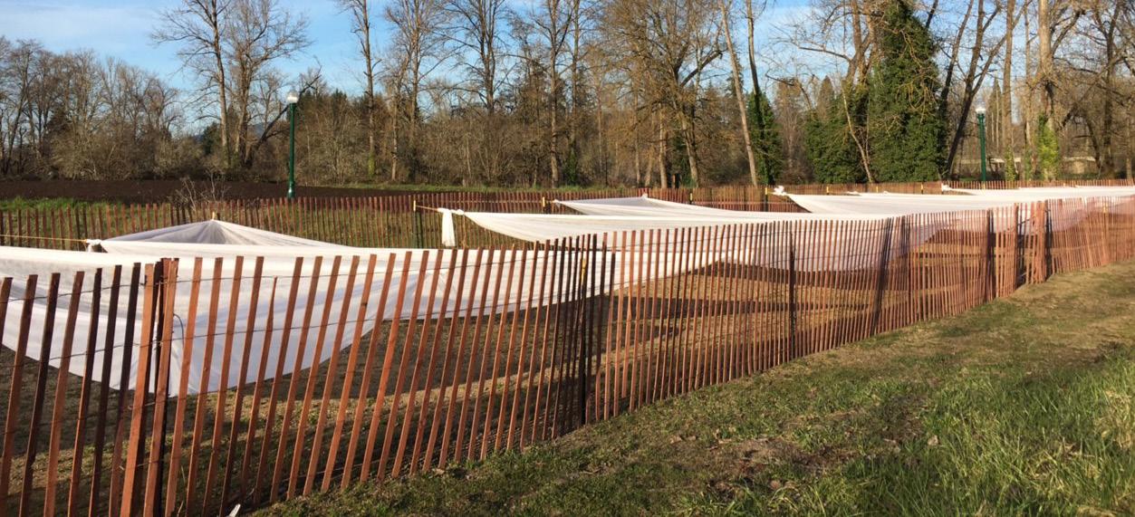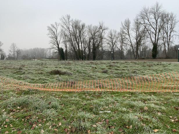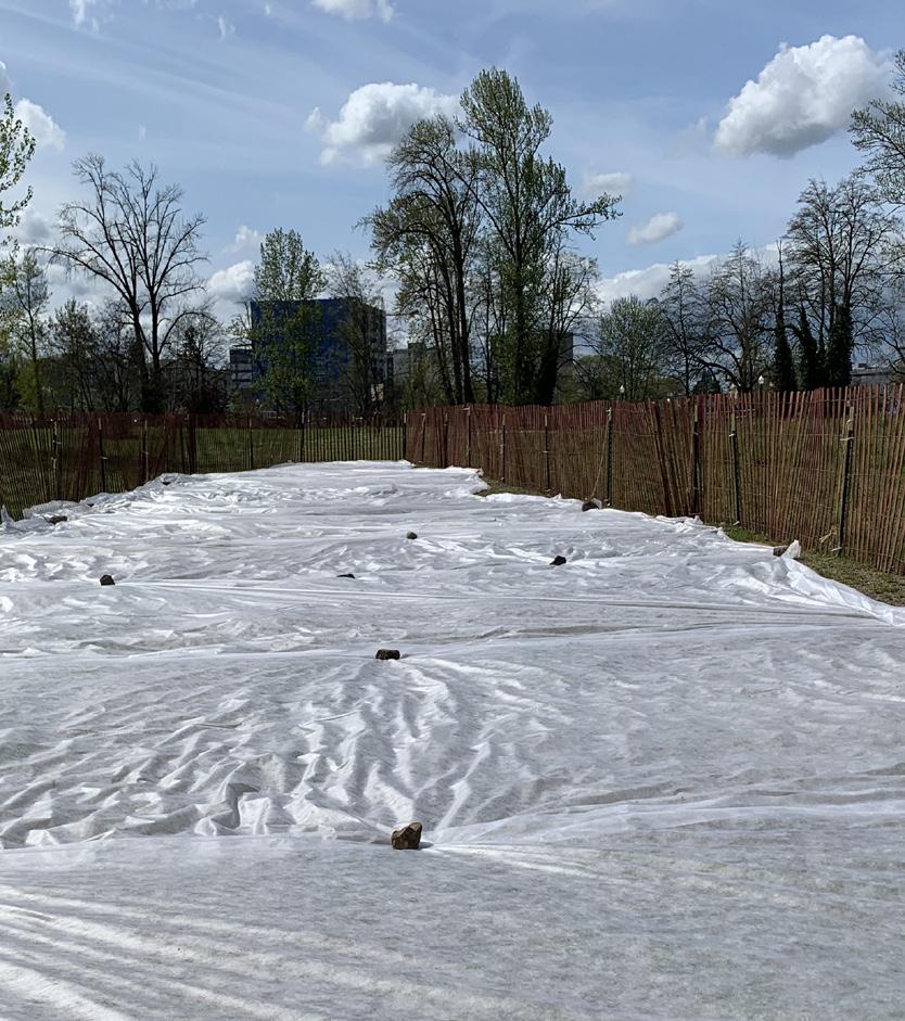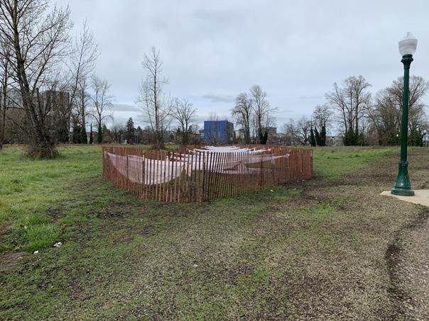 After seeding, we constructed the fence with the idea that it would help germination in the easement by keeping the geese from browsing. We sought to explore the creative potential and aesthetic properties of common landscape materials such as t-posts, temporary fencing and row cover fabric. The construction involved a collaborative process, and required maintenance and adaptation along the way. *Ask Michael if he has anything he’d like to contribute here