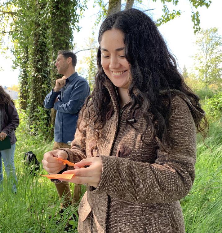 I’m currently in the process of exploring prototypes for a sitespecific temporary installation that highlights the black cottonwoods here. I became inspired by the presence of the cottonwoods after seeing how students engaged with them during the workshop. Black Cottonwoods are dynamic, charismatic, and engaging, and are also indicators of ecosystems that emerge from disturbance. The installation is accompanied by a zine that contains prompts inspired or developed by students from Liska’s class as a way to facilitate openings for relational connections with these trees and the site.