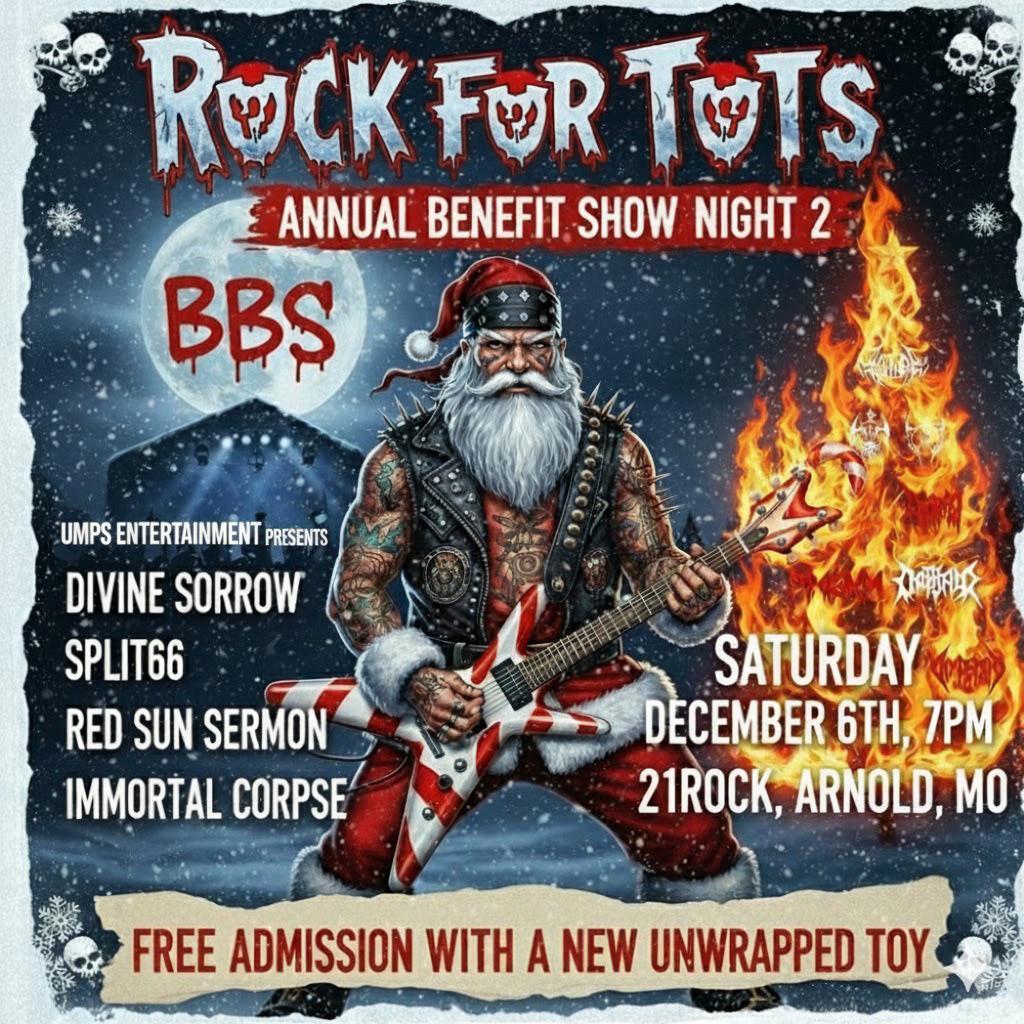 Join 21 Rock and Umps Entertainment for the inaugural Rock for Tots Weekend December 5&6. This exciting two night concert series features a fantastic line up of bands and supports a wonderful cause. Free admission with a unwrapped toy or there will be a cover charge without a gift.........