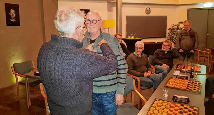 geprezen voor zowel zijn damprestaties als voor zijn positieve bijdrage aan de gezelligheid binnen de vereniging. “Ik was er samen met mijn vrouw Hanny, en had echt geen idee dat dit eraan zat te komen.” Daarna werd er natuurlijk gewoon gedamd. “Toen ging Hanny maar weer naar huis, ze heeft niet zoveel met de sport,” vertelt Tonnie lachend.
