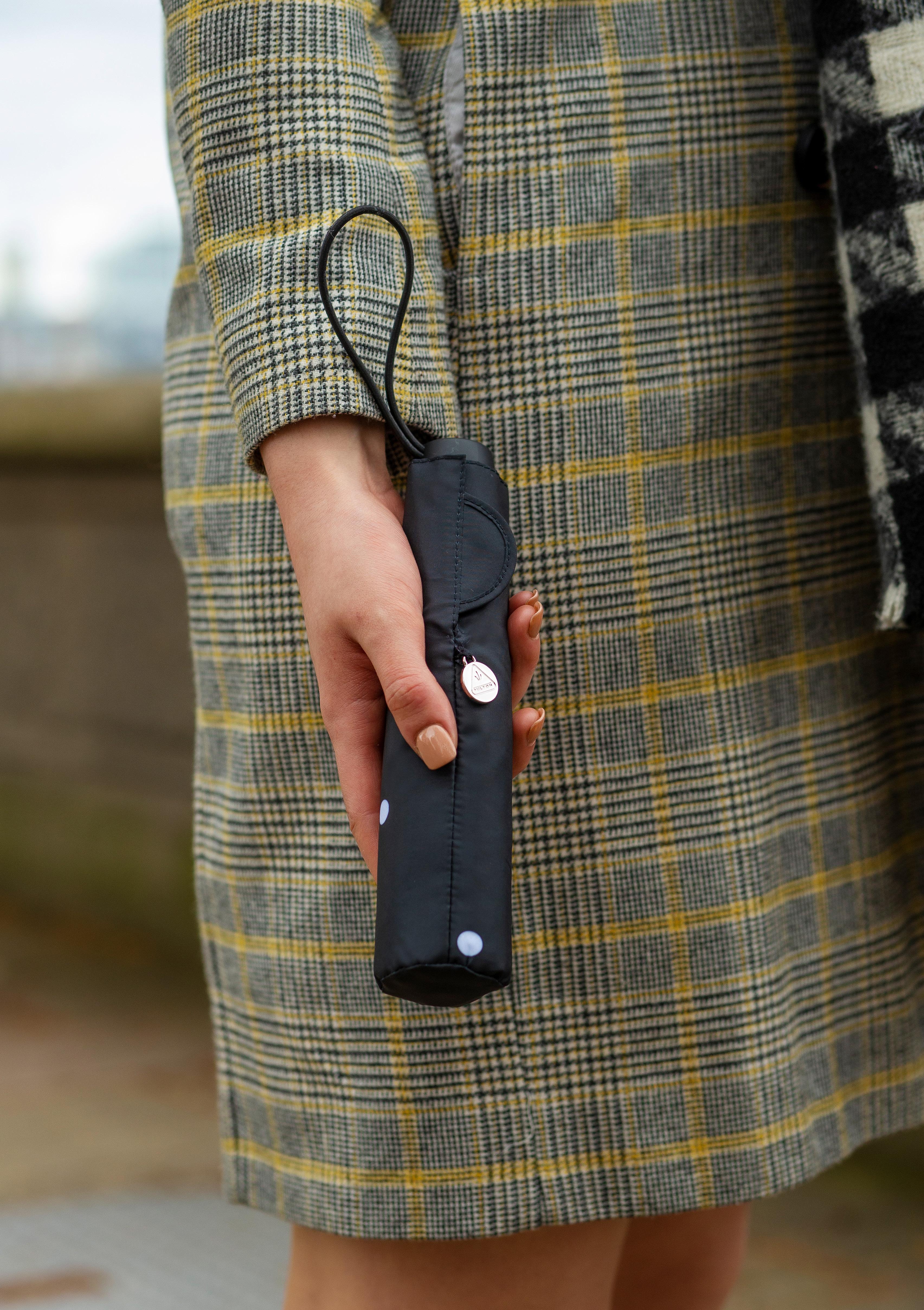 - Exceptionally compact, flat umbrella that fits into the palm of your hand