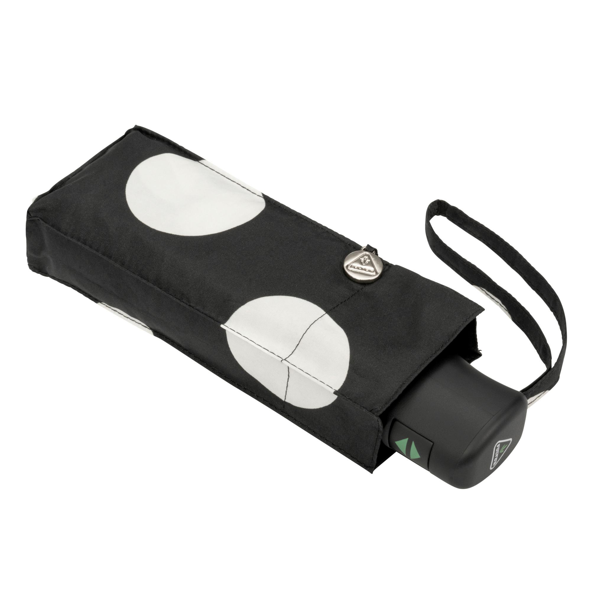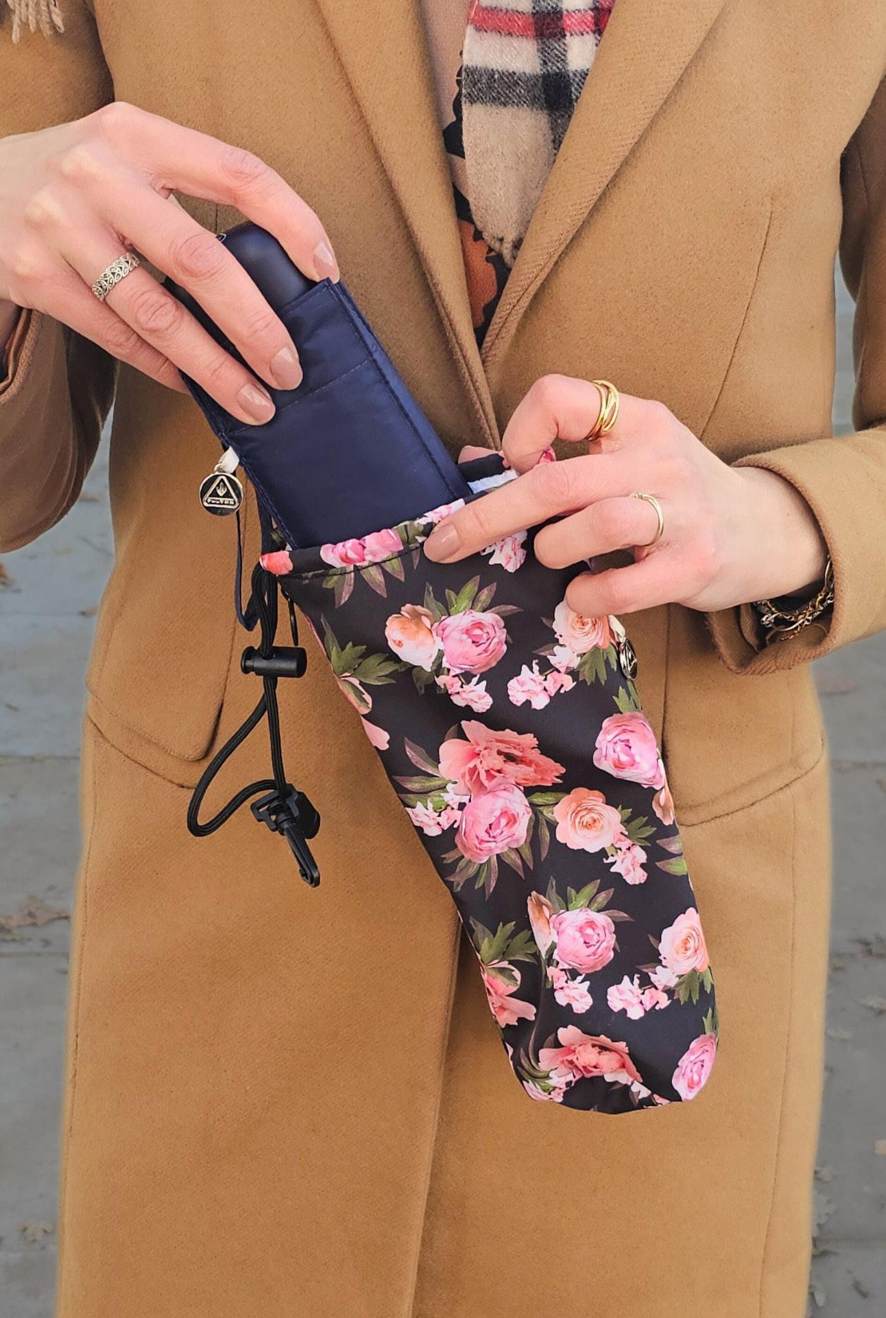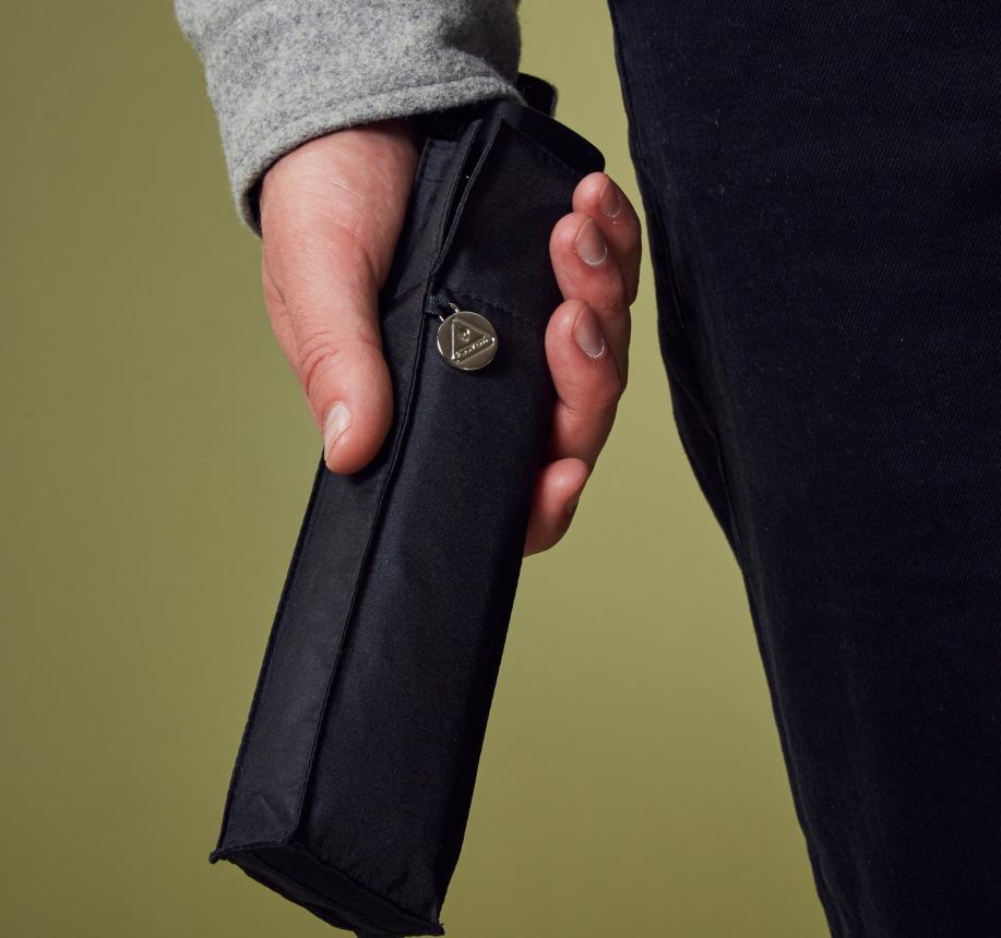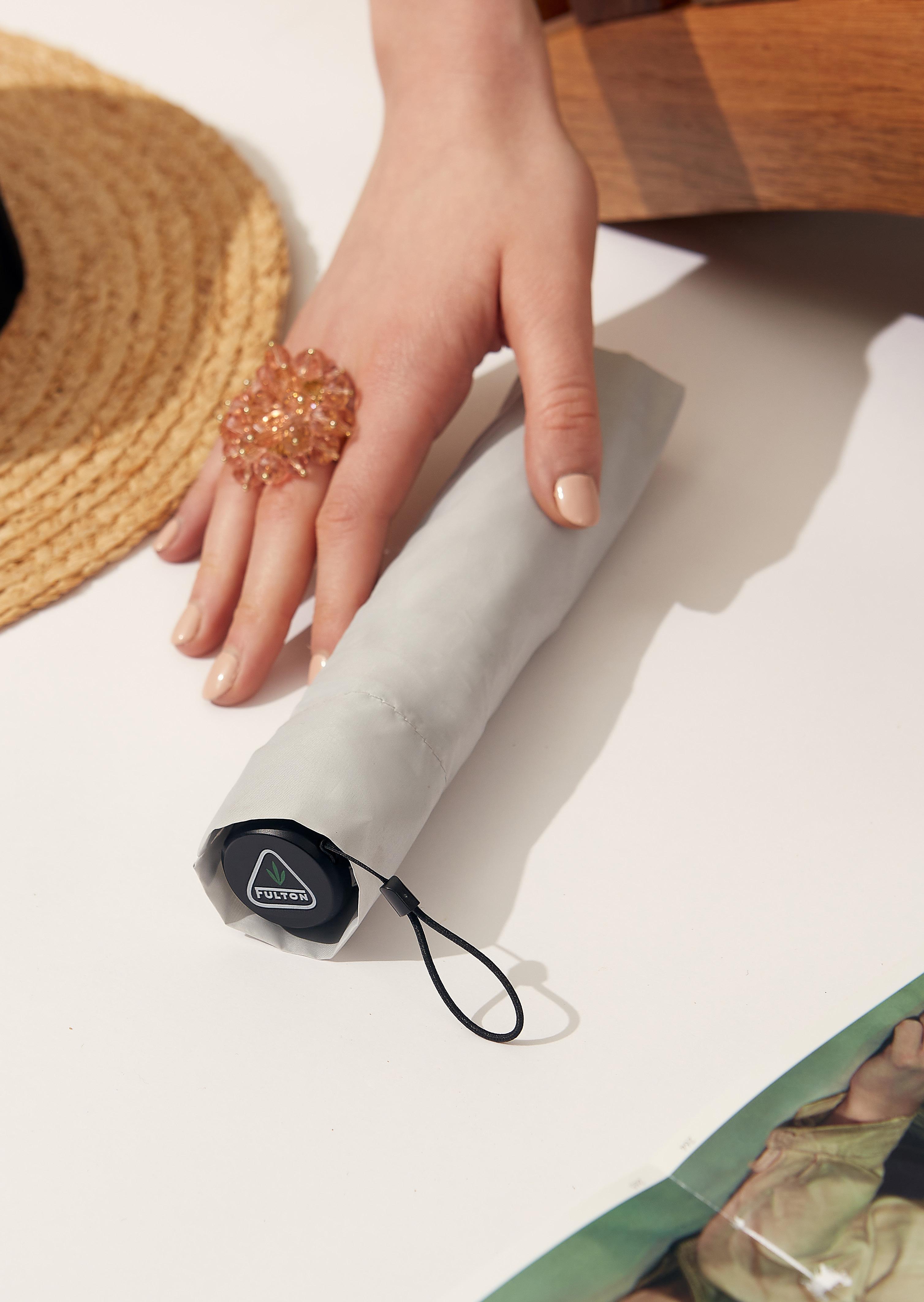 - Exceptionally compact, flat umbrella that fits into the palm of your hand