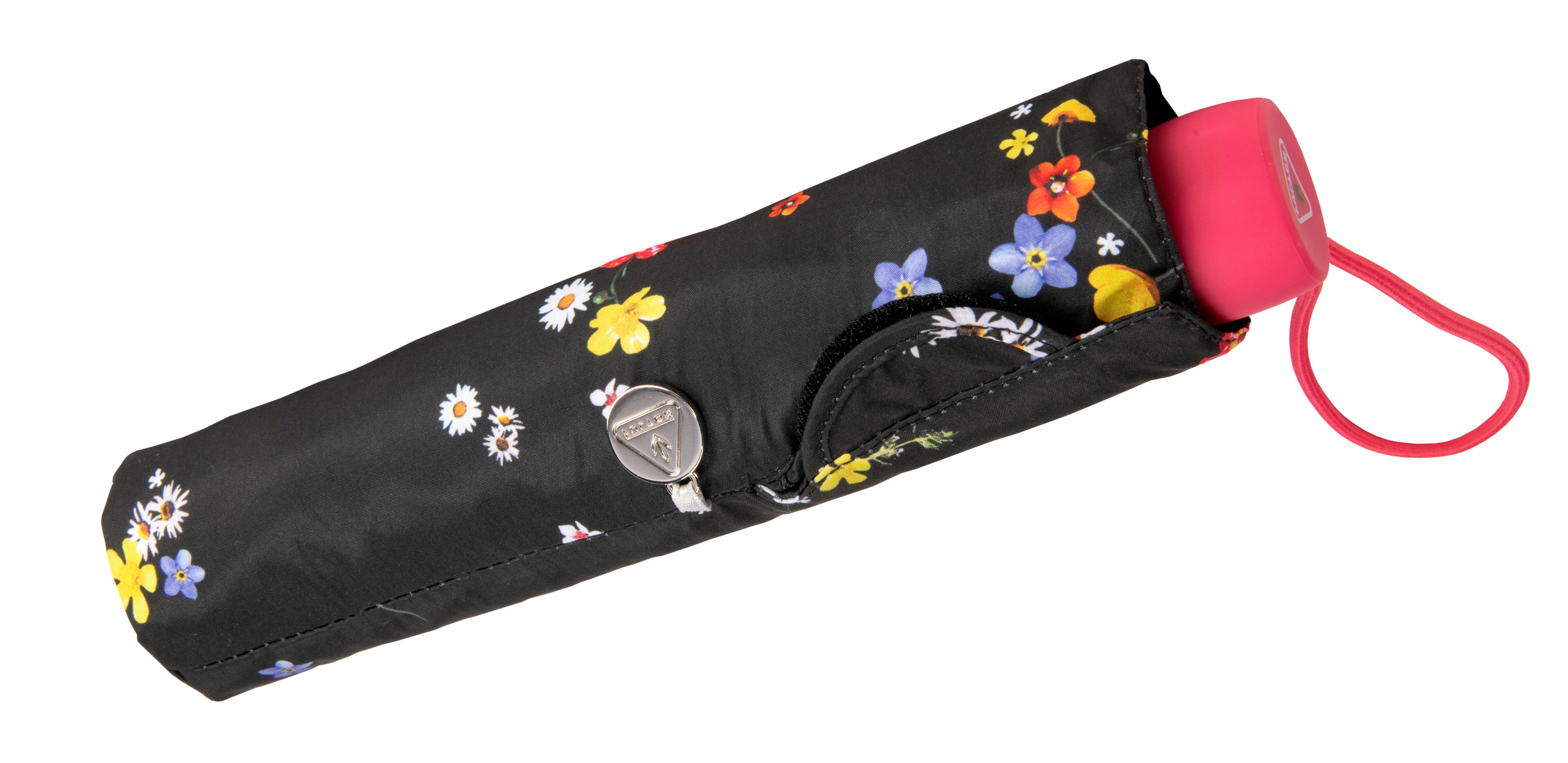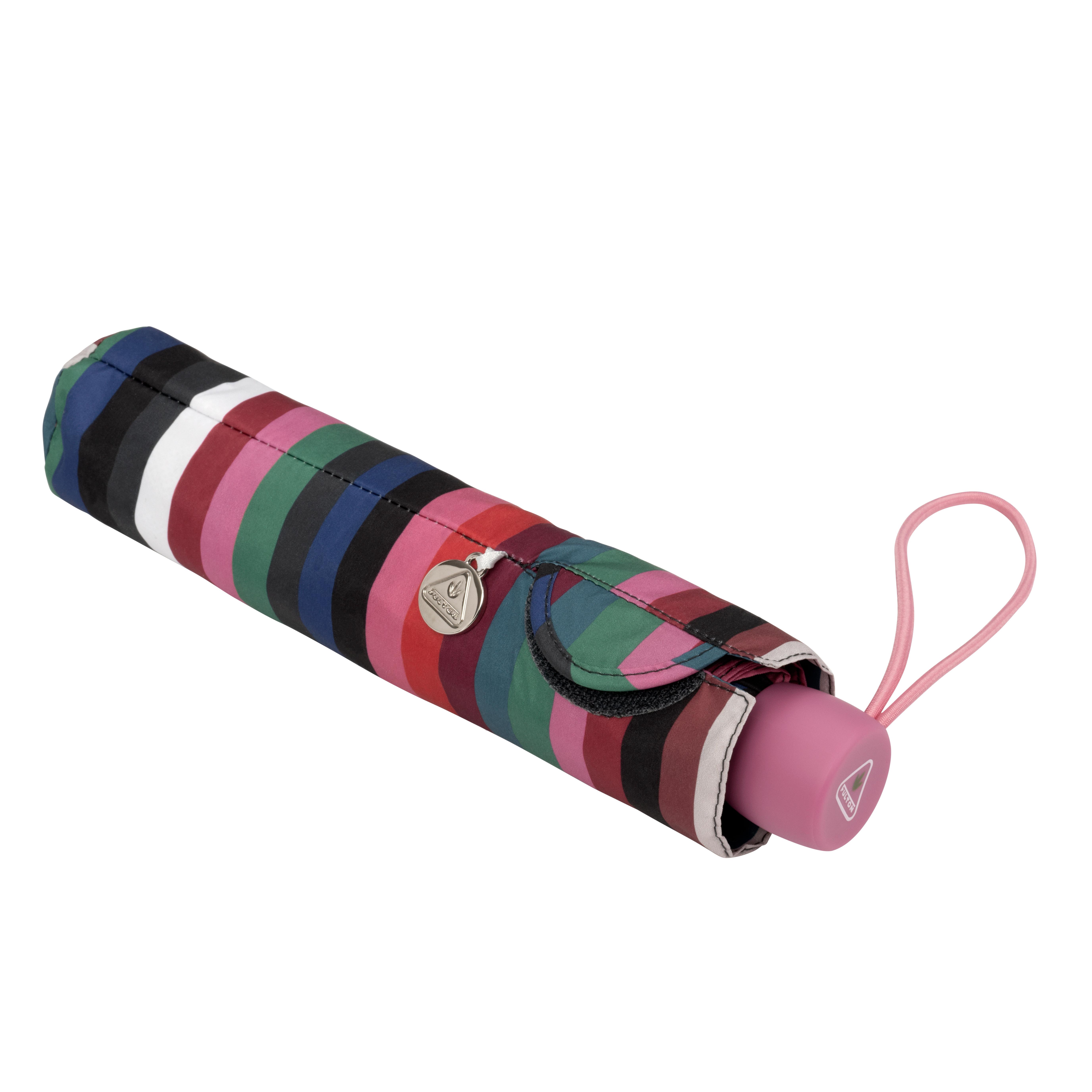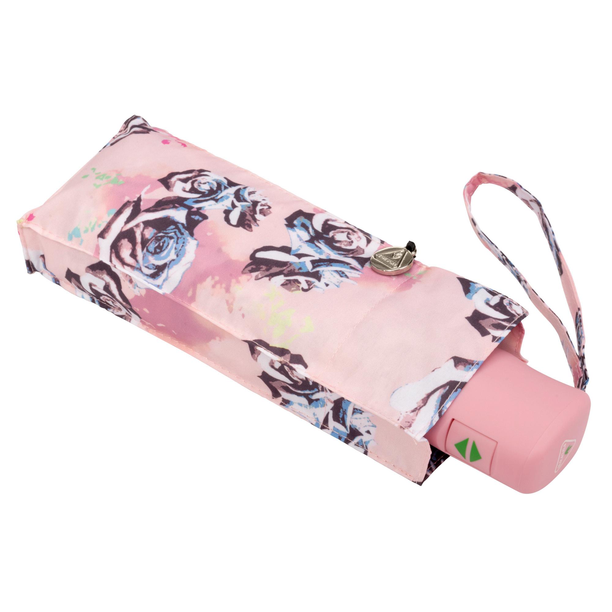 - Exceptionally compact, flat umbrella that fits into the palm of your hand