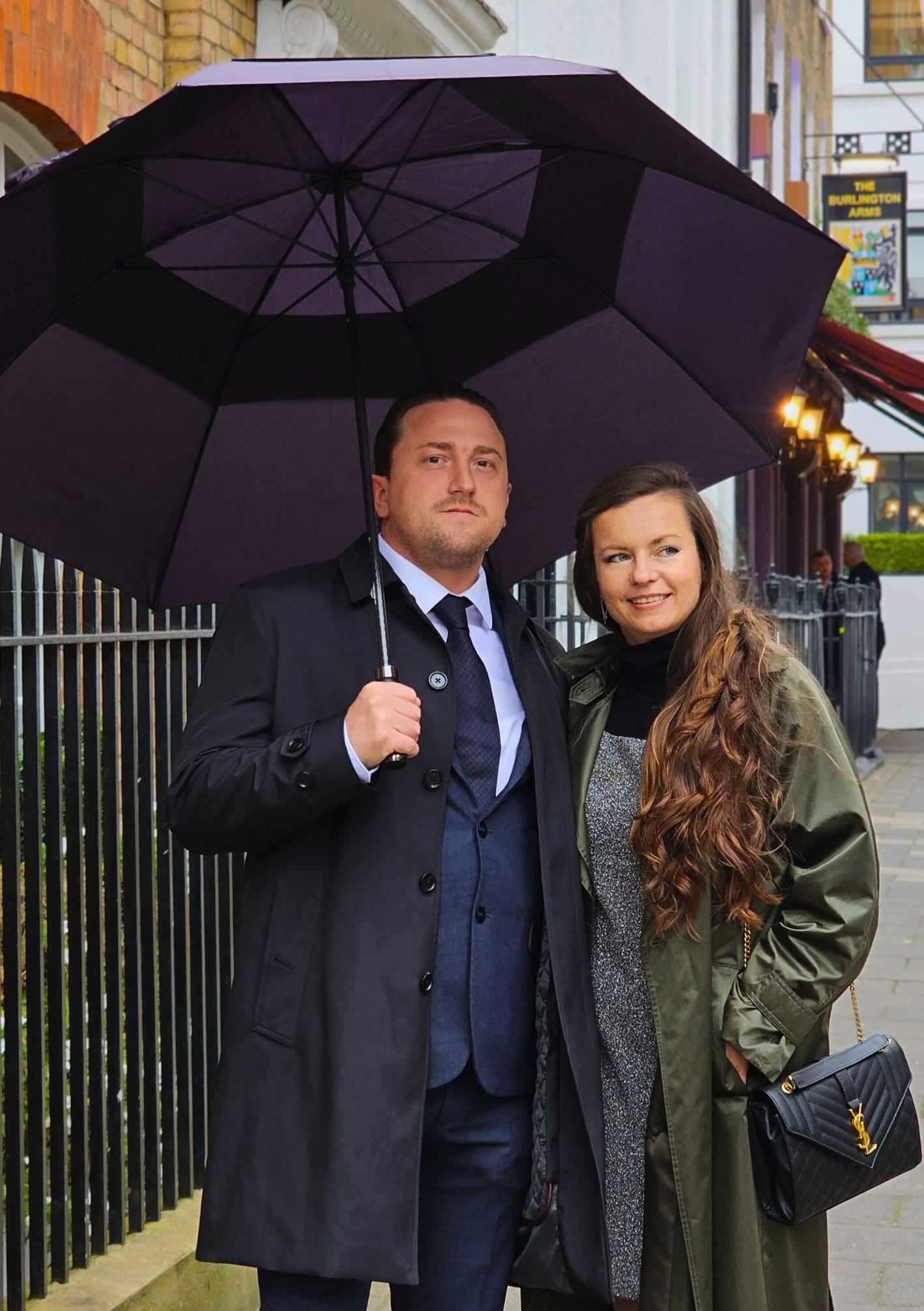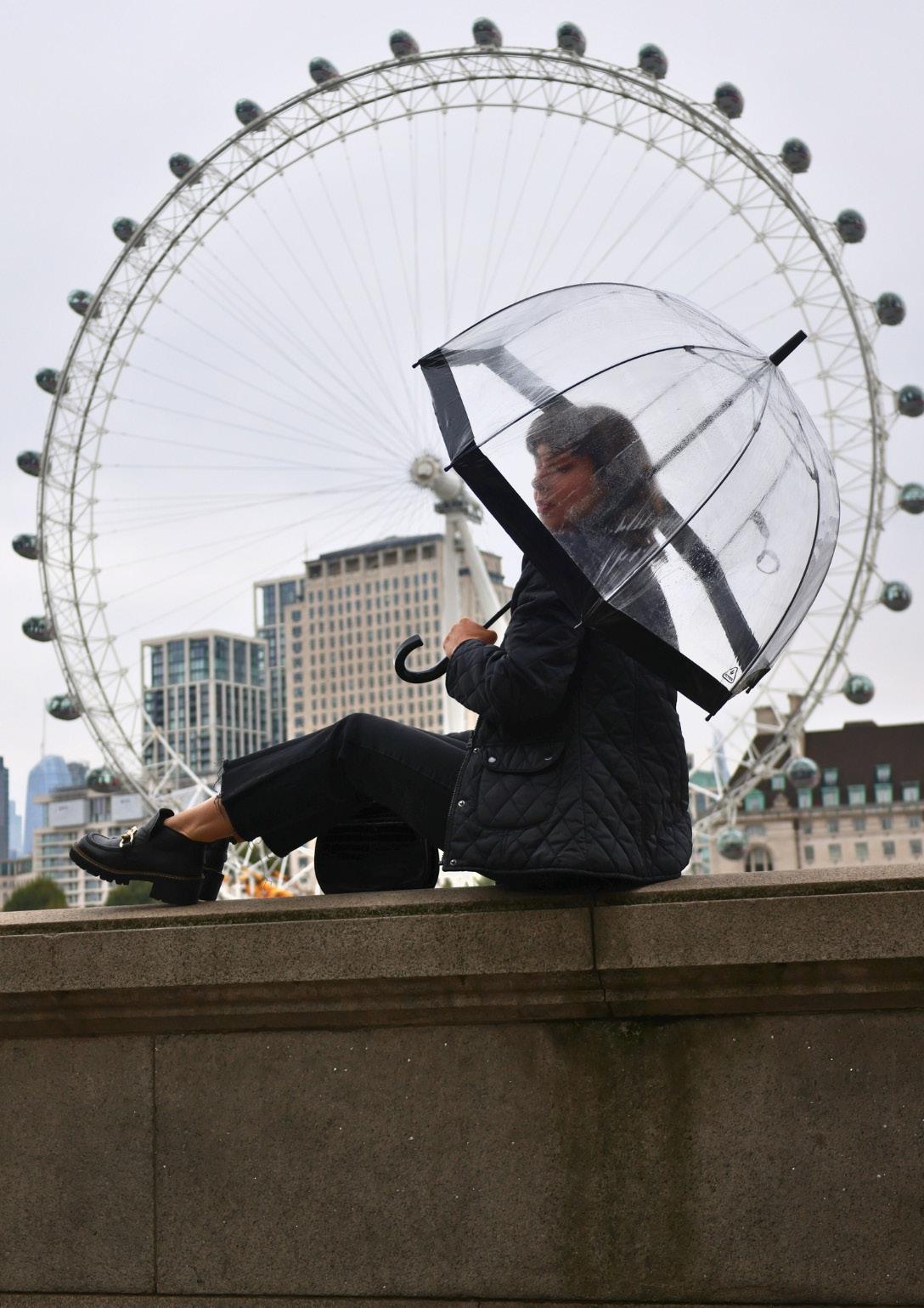 The iconic dome-shaped umbrella loved by the royal family. This unique umbrella offers complete coverage for your head and shoulders, ensuring maximum protection from the elements.