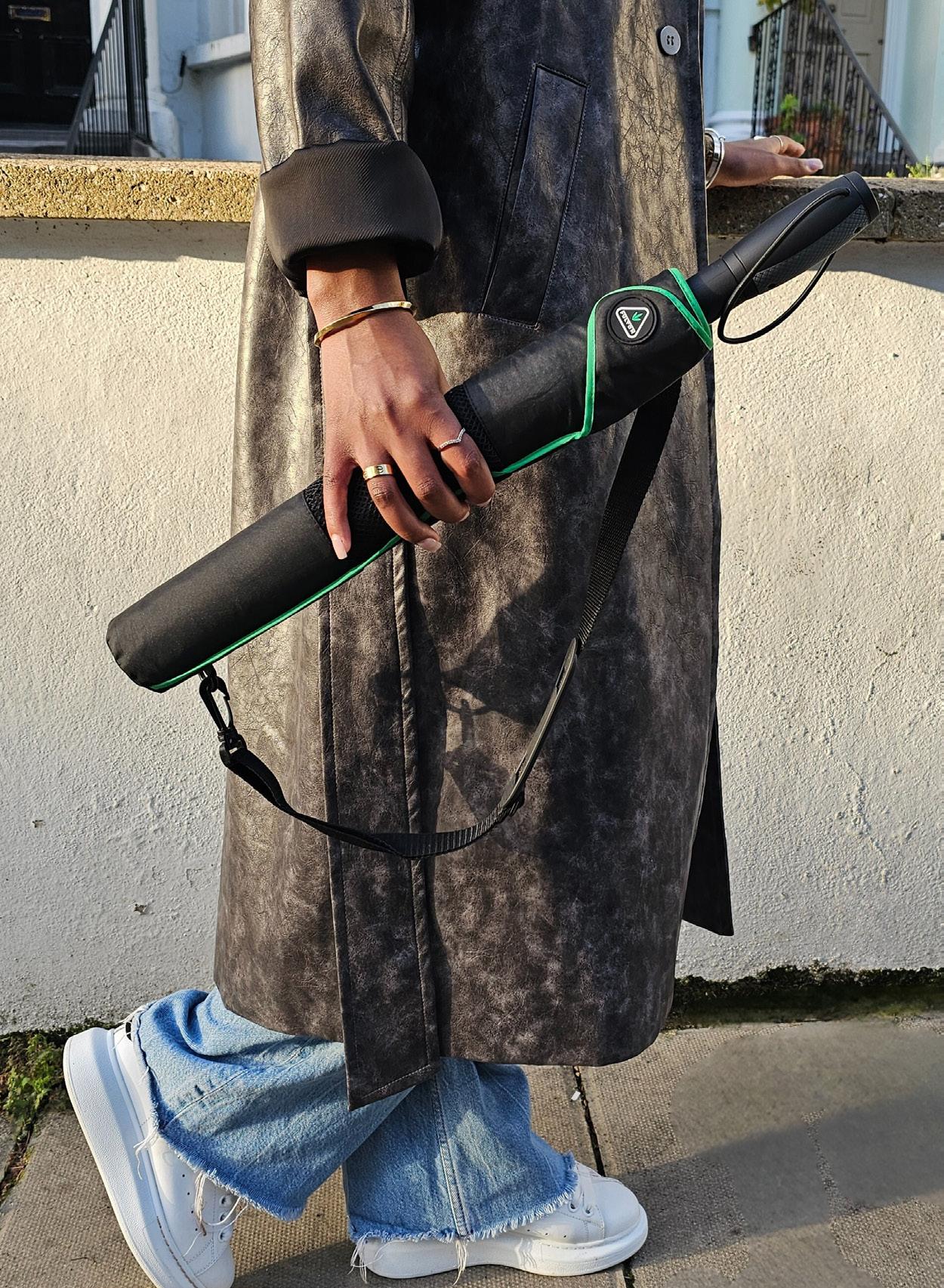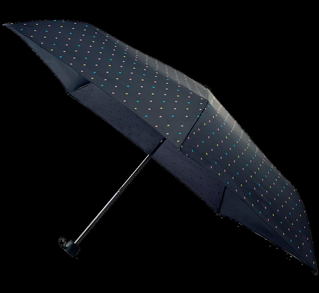 This umbrella features a 3.5cm wide, three-stage frame that is both lightweight and durable, thanks to its carbon fibre ribs, which measure 48cm in length.