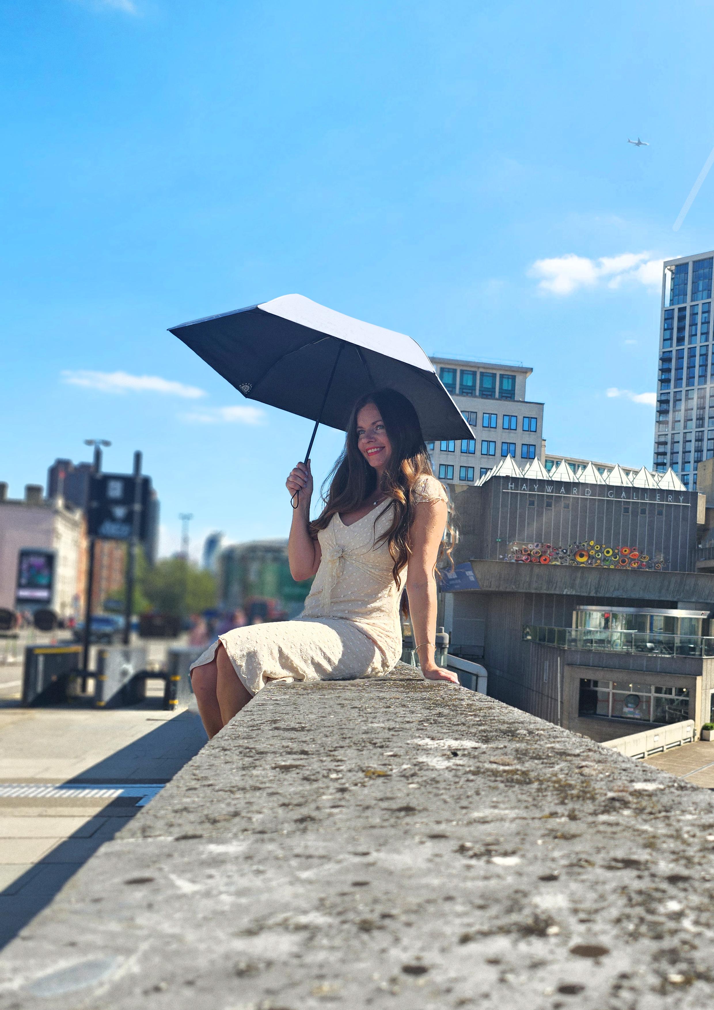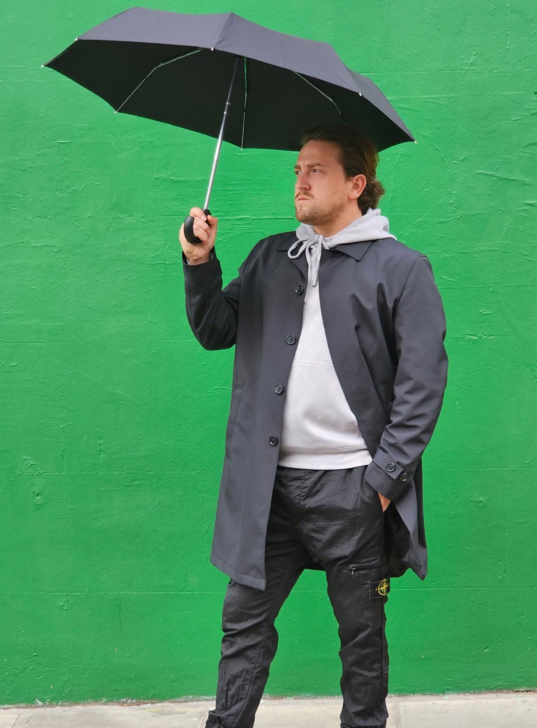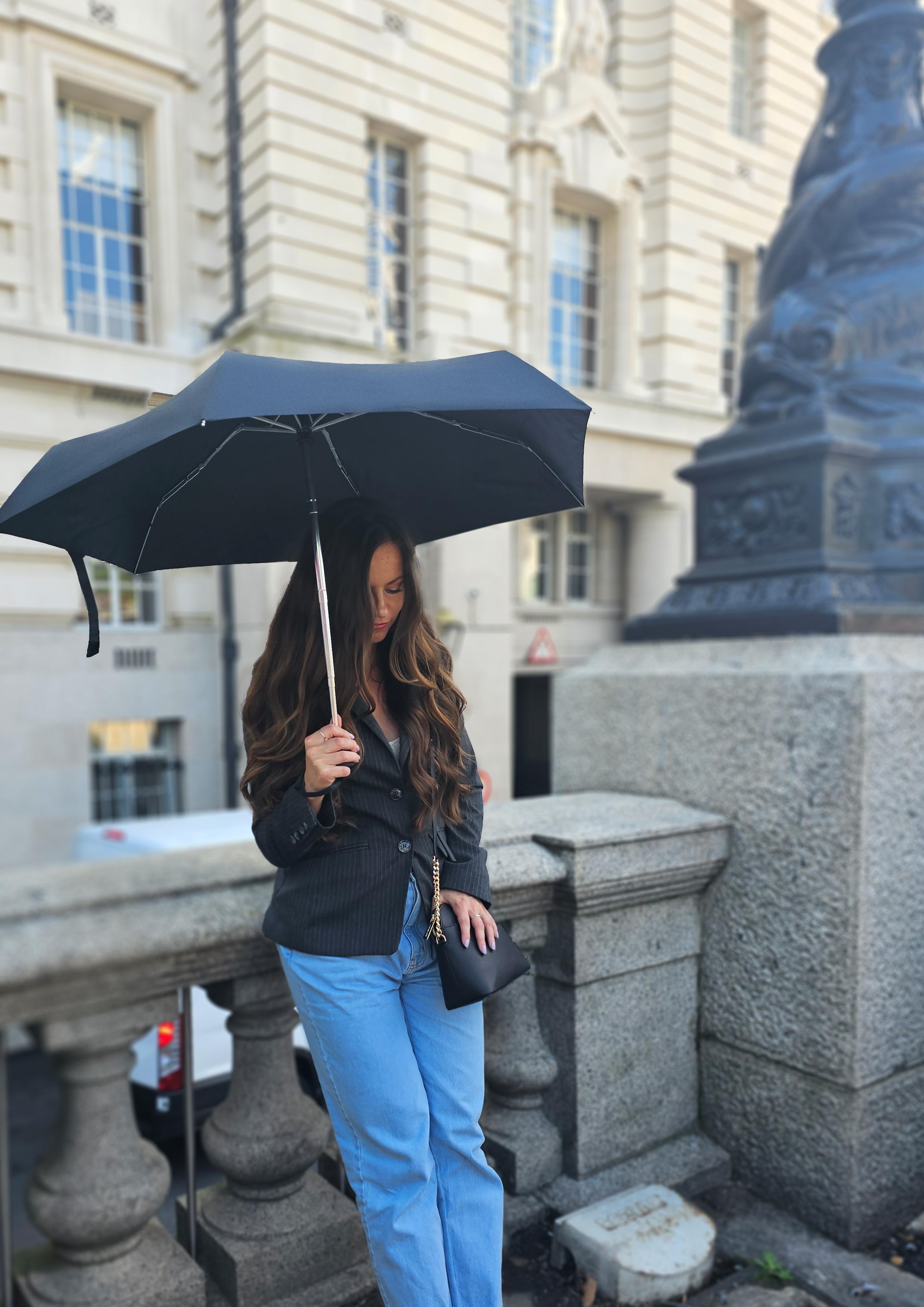 Introducing an exceptionally compact and flat umbrella that conveniently fits into the palm of your hand. Measuring only 6cm wide and 3cm deep, it weighs just 160g, making it incredibly portable