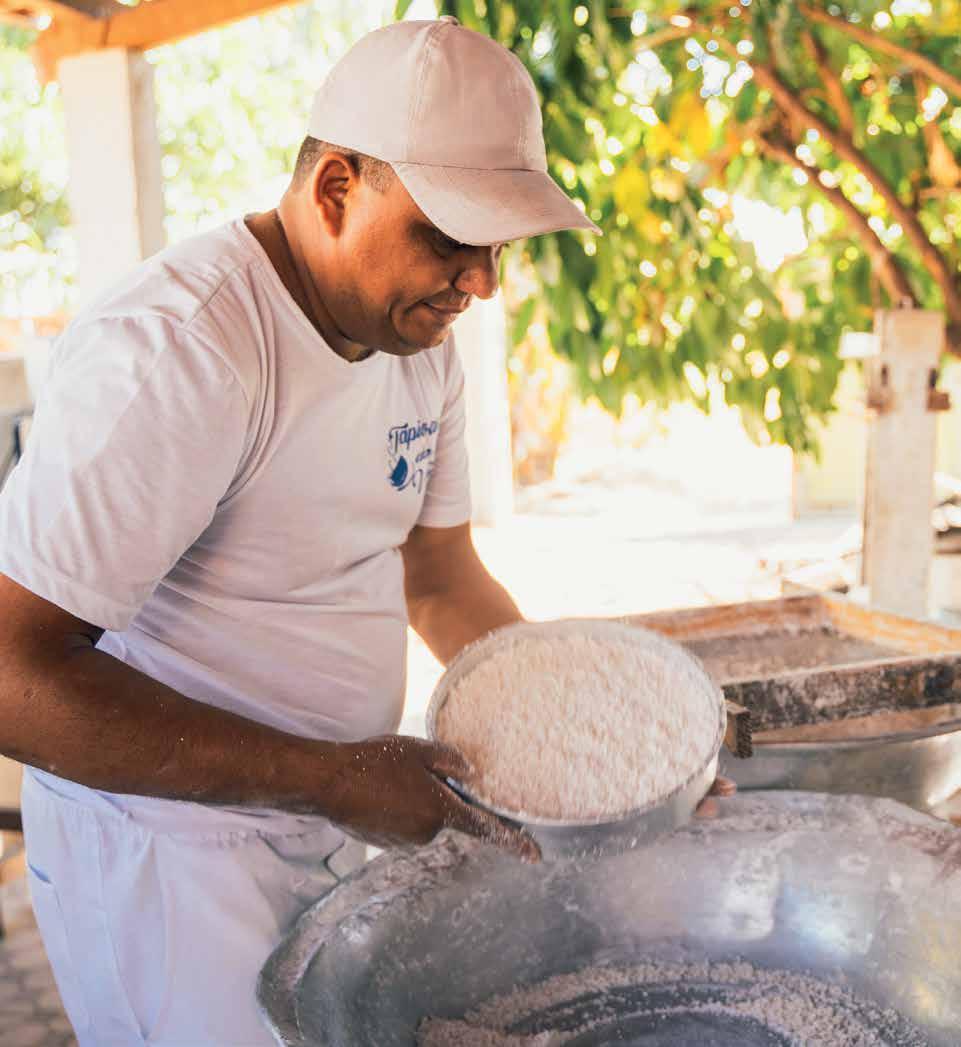 Sensação parecida vive a família de Maria Ceuzina da Silva Costa, de 70 anos, feliz líder da Tapioca da Vovó, do distrito de Santa Tereza. Ela conta que aprendeu essa arte de fazer tapioca com a mãe e há dez anos decidiu comercializar: “A estrada melhorou o negócio em 100%. Entregamos 150 encomendas por semana”.