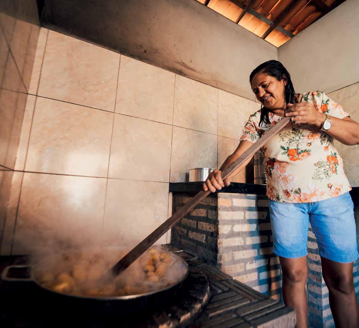 Luciene da Silva Barros Lima aprendeu a fazer doce e bolo com a mãe. O tio já trabalhava com tapioca. Sem emprego, decidiu empreender. A Caminha’s Gourmet comercializa doces, bolos e tapiocas: “A gente ganhou uma licitação no IFCE para fornecimento de merenda e levava, de moto numa estrada horrível, 60 cuscuzes e 1 galão de 22 litros de café com leite. “Você não tem noção do que sofria para fazer a entrega”. Atualmente, ela faz cerca de 30 bolos no fim de semana, e, na época da safra, chega a fazer 45 quilos de doce de caju por semana.