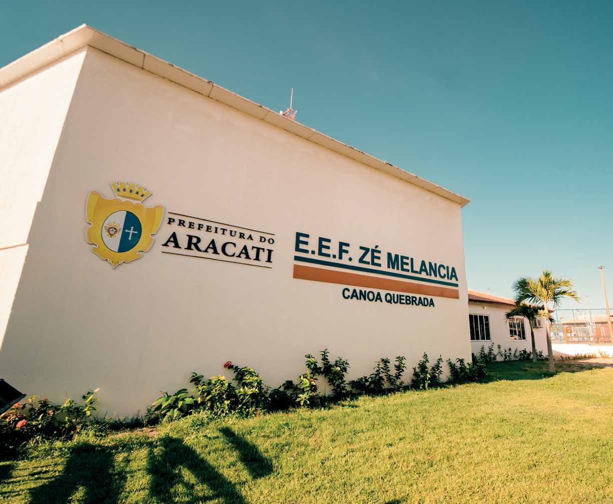 A Escola de Ensino Fundamental (EEF) Zé Melancia, em Canoa Quebrada, foi totalmente reconstruída. Agora os seus 595 alunos, do 2º ao 9º ano, contam com salas equipadas, tablets e um auditório com capacidade para 160 pessoas, que pode até servir ao turismo de eventos. Lucas Emanuel Pereira de Macedo, 13 anos, cursa o 7º ano do Ensino Fundamental II e está feliz da vida com as novidades.