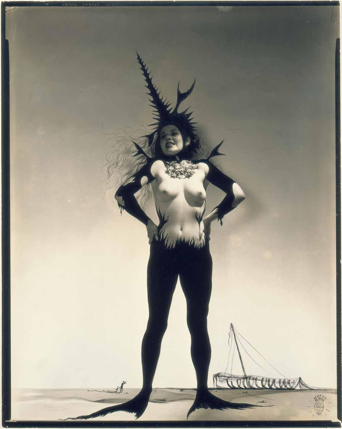 dia, remet a una època crepuscular, devastada pel furor dels deliris subconscients tant eròtics com polítics de la imminent Segona Guerra Mundial. A la secció del pavelló dedicada a l’espectacle de les dones-sirenes en una bassa d’aigua, Dalí recorre als principis de morfologia de Monod-Herzen per representar un desig subconscient devastador. A partir del 1936, Dalí pren com a referència l’enfocament d’aquest científic,27 que lliga inextricablement l’acció invisible de l’exterior amb la reacció visible de la matèria, que considera sobretot l’esquelet dels radiolaris com una «configuració extraordinària» sorgida de les «accions mecàniques exercides sobre l’animal pel fluid que l’envolta».28 Tal com demostra un dibuix,29 Dalí crea unes «living liquid ladies», afaiçonades per l’aigua com els radiolaris i que també combinen formes esfèriques (els pits rodons i nus) formes punxegudes (les espícules). La naturalesa d’aquestes dones-sirenes és atàvica i destructora, tal com mostren els seus fiblons, així com la carcassa animal amb forma de vaixell que Dalí integra en una foto de dona-sirena.