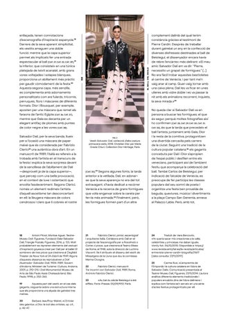 24 Traduït de: Vera Bercovitz, «Yo quería sacar mis creaciones a la calle, celebrities y princesas me daban igual», Vanity fair, 06/12/2015. Disponible a: https:// www.revistavanityfair.es/la-revista/articulos/ entrevista-pierre-cardin-biografia/21617 [data consulta: 27/11/2019] 25 Carme Ruiz, «L’empremta de l’Empordà i la cultura catalana en l’obra de Salvador Dalí». Comunicació presentada al Teatre-Museu Dalí, Figueres, 27/11/2014. L’autora analitza diferents elements tradicionals i populars encabits dins de l’obra daliniana i explica com l’artista se’n serveix en una sèrie d’actes festius protagonitzats per ell.