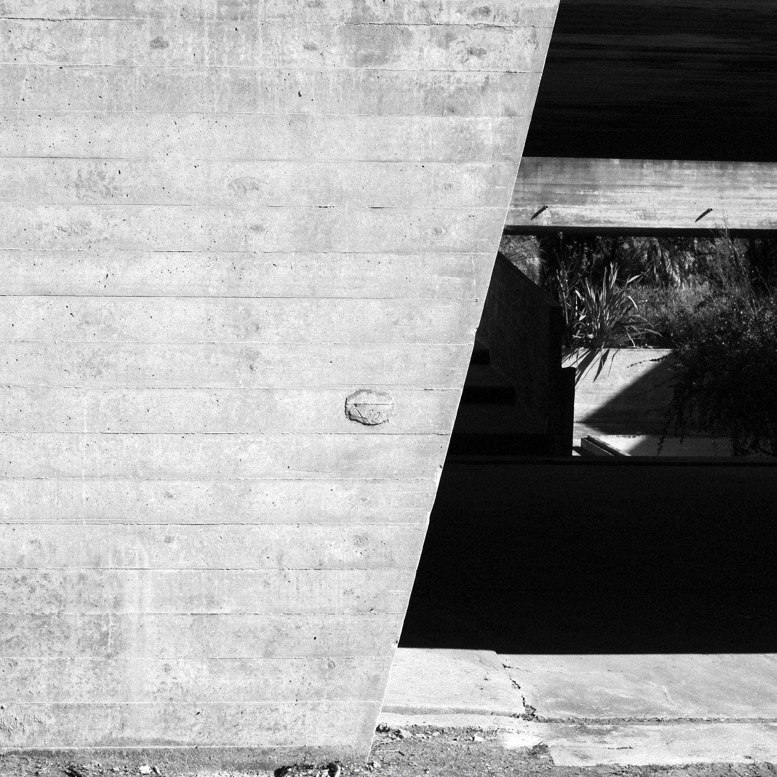La pura materialidad del cemento organizado en la fluidez de envolventes sugerentes y complejas (aun siendo hecha con piezas planas) pero a la vez en la potencia de una tectónica firmemente ensamblada en un terreno de relieve irregular, sin embargo puede combinar la llegada de unos pies triangulares –bien al gusto del final Corbu de Firminy o del mas cercano y seguramente influyente Reidy- con otros apoyos resueltos como pilares de madera de quebracho, rústicos, como el suelo mismo que los soporta