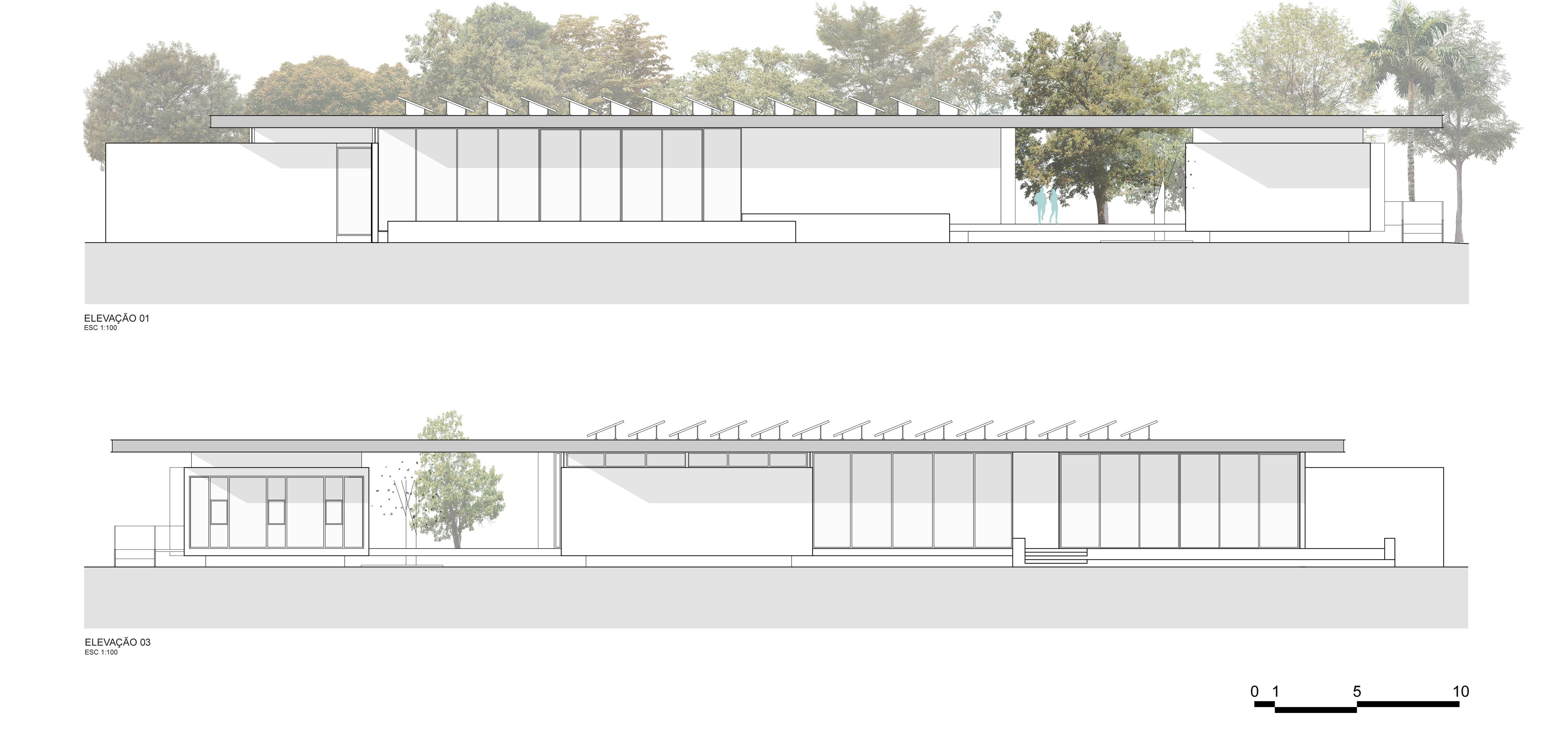El Centro de Artes y Educación de Pimentas está en Guarulhos, São Paulo, en el barrio de Pimentas, un lugar con poco equipamiento comunitario dirigido a la educación, el ocio y el deporte.El proyecto es lineal, materializado en una gran cubierta metálica que alberga en sus márgenes longitudinales diferentes usos, articulados por un vacío que culmina en una zona central dedicada a deportes con un complejo acuático fuera de este eje, en la zona exterior. La topografía plana y la configuración lineal del sitio fueron determinantes.